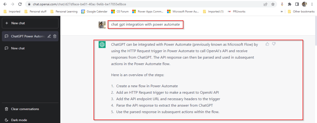 I have just tried entering how we can integrate Open AI’s ChatGPT and Power Automate and results are pretty much shown in a manner which is easier to understand as below.