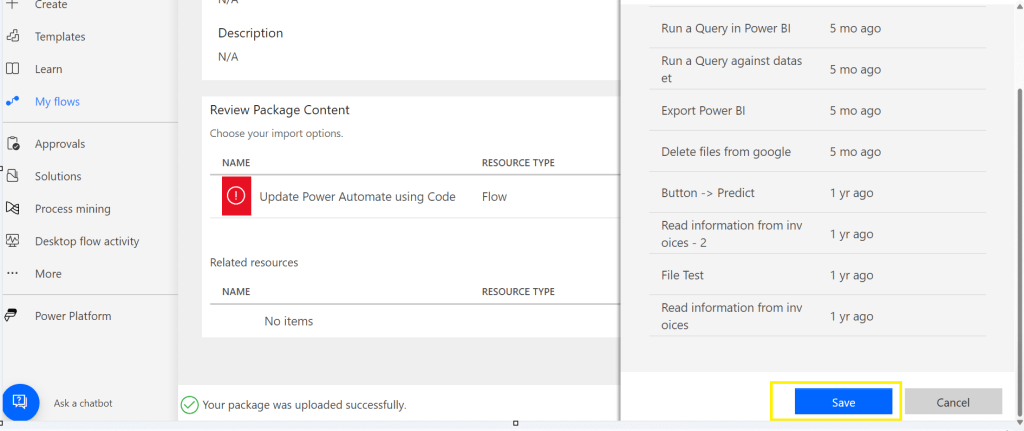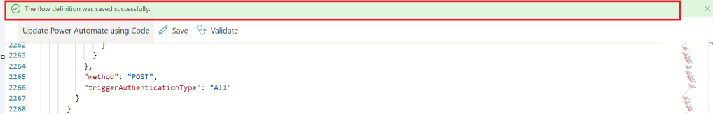 Upon saving, your Power Automate flow, an alert will be shown to you, and the flow will be updated.