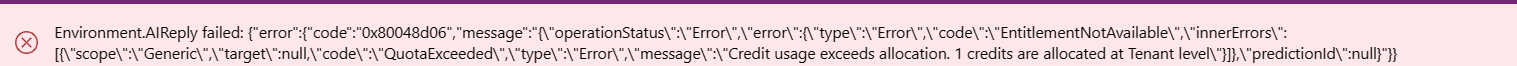 Please do note that there are quotas to use these AI Functions at tenant level, else you might get similar error like below, while I didn’t get any information regarding this from Microsoft, so I am unsure about this as of writing this post, I will keep this updated if I get to know.