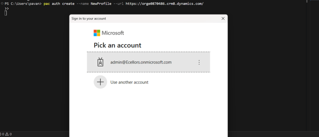 After installing the prerequisites, I was trying to connect to my Power Pages available in my organization from VS Code terminal using below command.