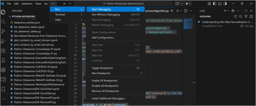 Machine learning often begins with one essential step: data preprocessing. Before models can learn patterns, the raw data must be cleaned, scaled, and transformed into a form suitable for analysis. In this example, let me demonstrate how to retrieve numerical data from Microsoft Dataverse and apply a linear normalization algorithm using Python.