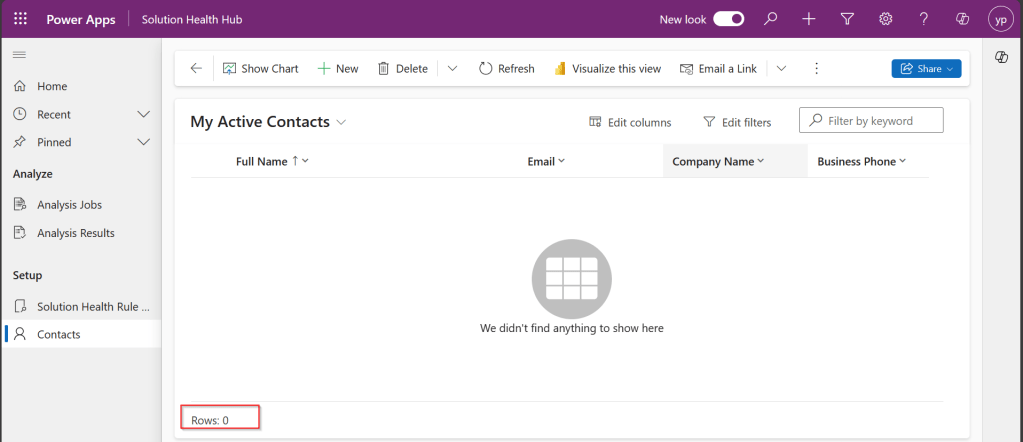 On selection of the Dataverse Accelerator App, you should see something like below, do note that you must have App-level access to the Dataverse accelerator model driven app, such as system customizer or direct access from a security role.