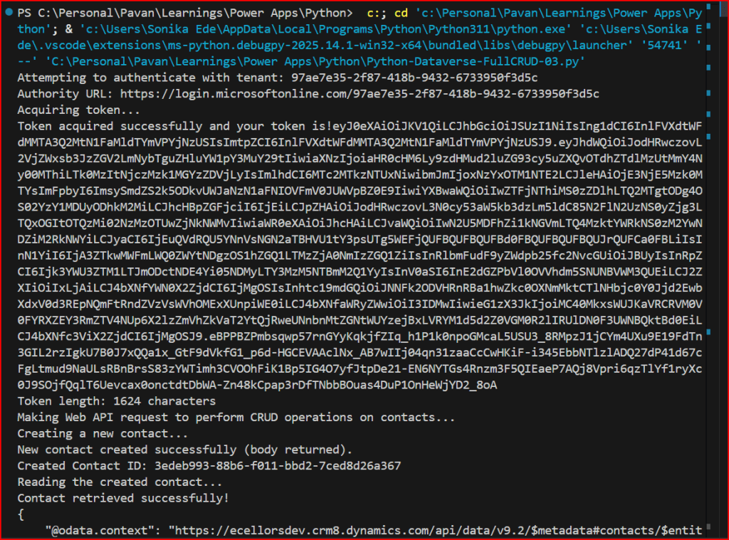 This is continuation in this Python with Dataverse Series, in this blog post, we will perform a full CRUD(Create, Retrieve, Update, Delete) in Dataverse using Web API.