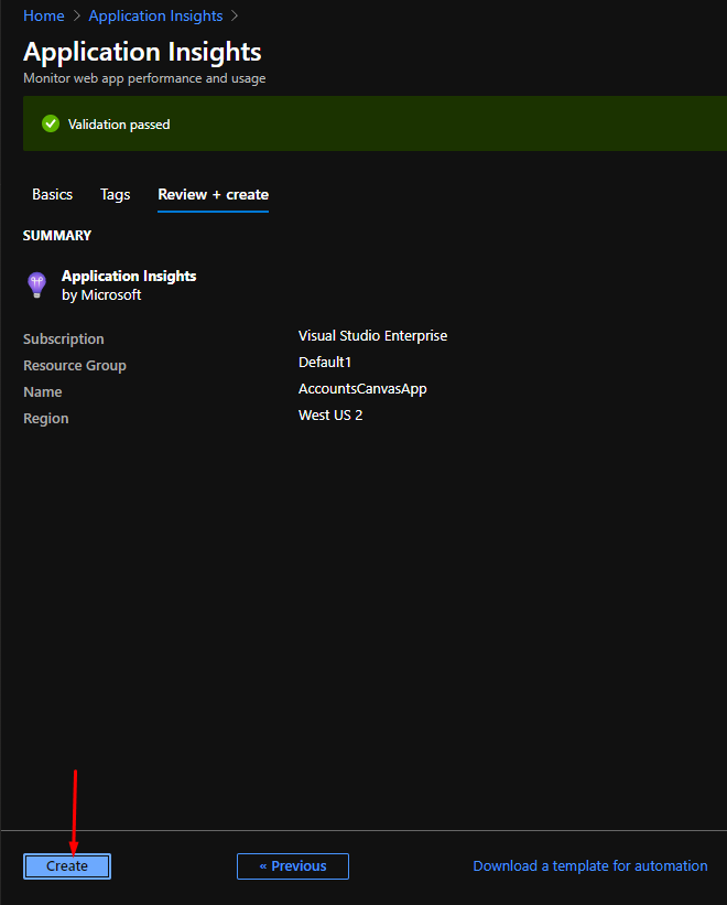 In the results, click Create.