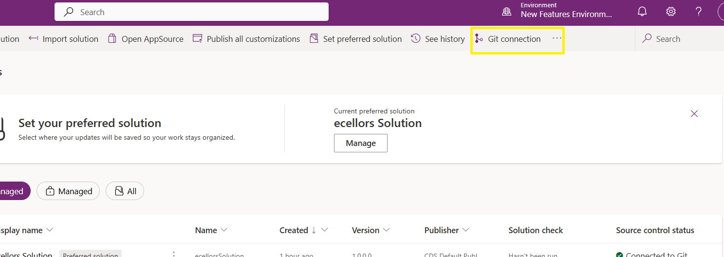 This post is about Dataverse and Git Integration which is the most sought after feature in the todays automation Era. This is a preview feature, you would need to create a new environment with Early Access enabled to test this feature or you can use an existing US Preview environment for testing this out.